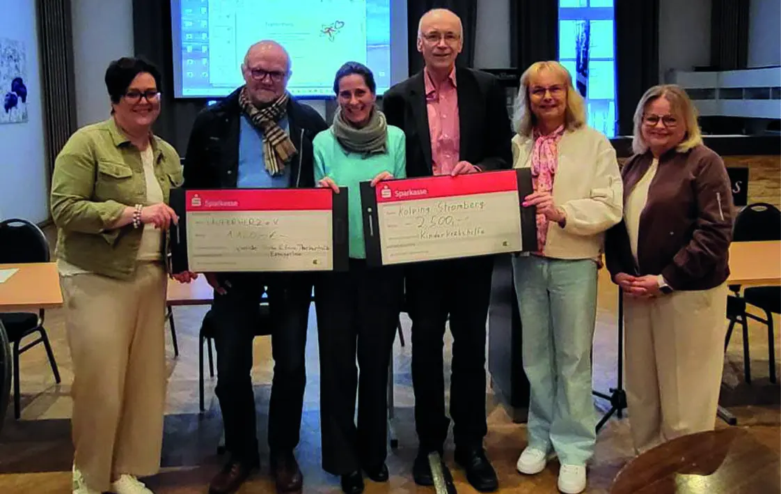 Manuela Kalthoff von Thekentalk Ennigerloh, Alfons Grünebaum von der Kolpingsfamilie Stromberg, Fr. Prof. Dr. med. Claudia Rössig, Georg Gösling von der Kolpingsfamilie Stromberg, 2. Vorsitzende Läuferherz e.V. Ashley Volbracht, Ute Henkenjohann vom Thekentalk Ennigerloh,