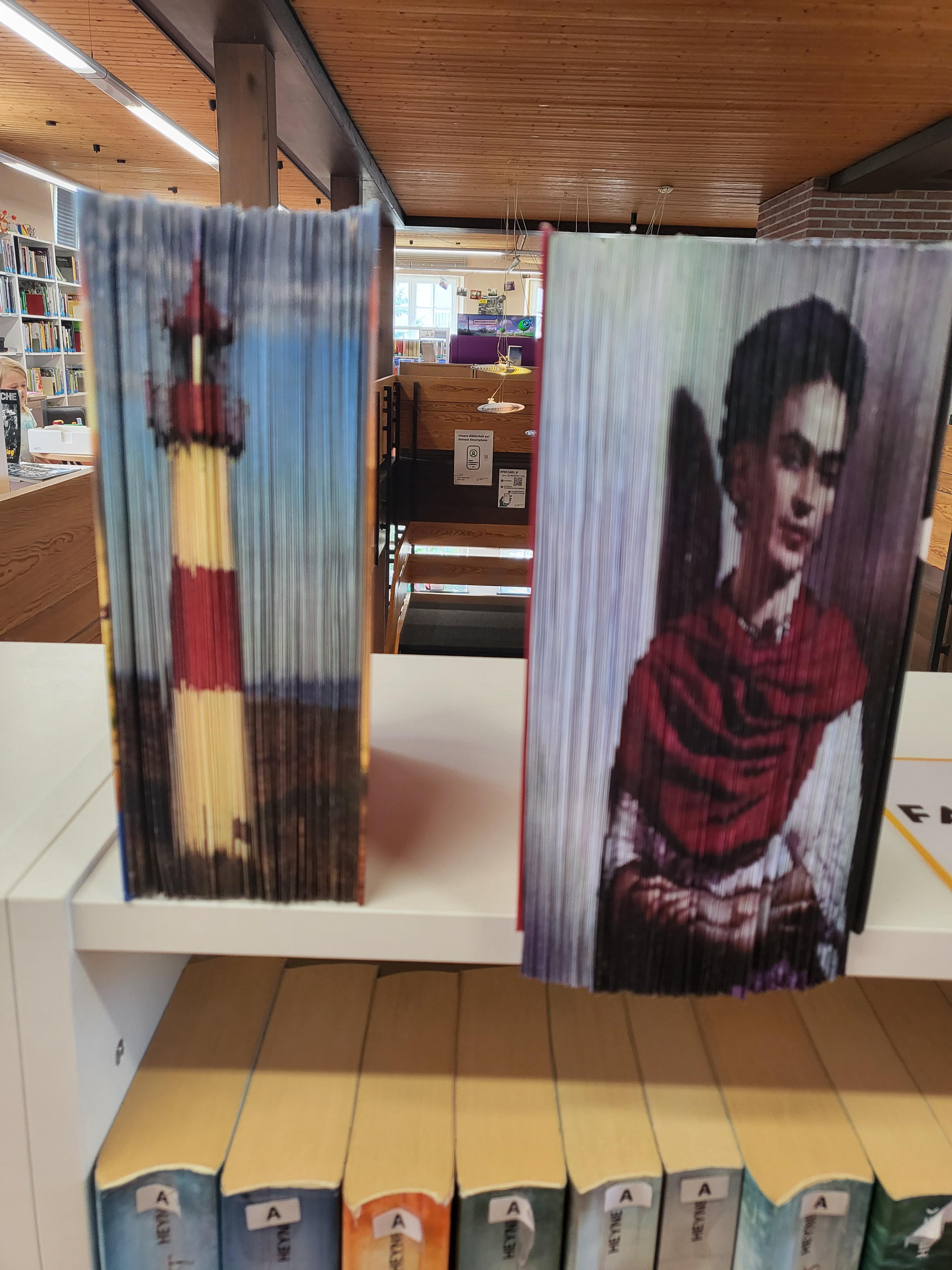 Seit geraumer Zeit produzieren viele Verlage Bücher mit besonderen Buchschnitten. Diese sind meist farblich und künstlerisch am Inhalt des Buches orientiert und begeistern ihre Leserschaft. Am 21.10. wird es bunt und farbenfroh. Die Bibliothek hat sich für drei Motive entschieden, die mit Büchern im engen und weiteren Sinne verknüpft werden. Ein Buchblock könnte als Leuchtturm gestaltet werden, das nächste Motiv wäre eine Eule und als Drittes ein Portrait von Frida Kahlo. Diese Fotos werden in Streifen zerschnitten und auf den Buchblock geklebt, sodass am Ende ein fertiges Bild entsteht. Wer also seinem Bücherregal einen ganz besonderen Look verpassen möchte, ist bei dieser Aktion genau richtig.