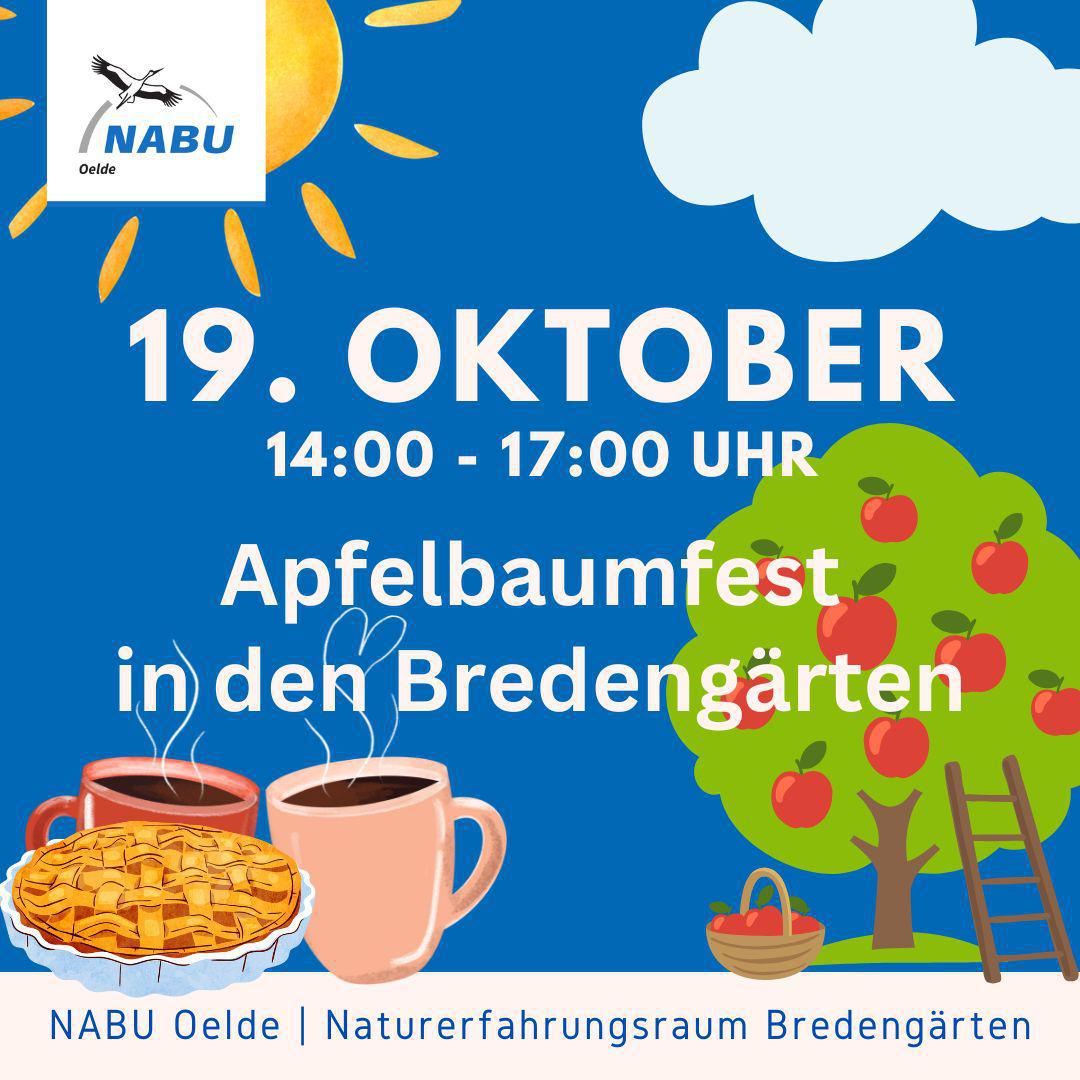 Am Sonntag, den 19. Oktober, lädt die Projektgruppe NER Bredengärten des NABU Oelde herzlich zum Apfelbaumfest ein. Von 14 bis 17 Uhr dreht sich im Naturerfahrungsraum (NER) Bredengärten alles um regionale Apfelsorten, Artenvielfalt und den Erhalt alter Kulturlandschaften.