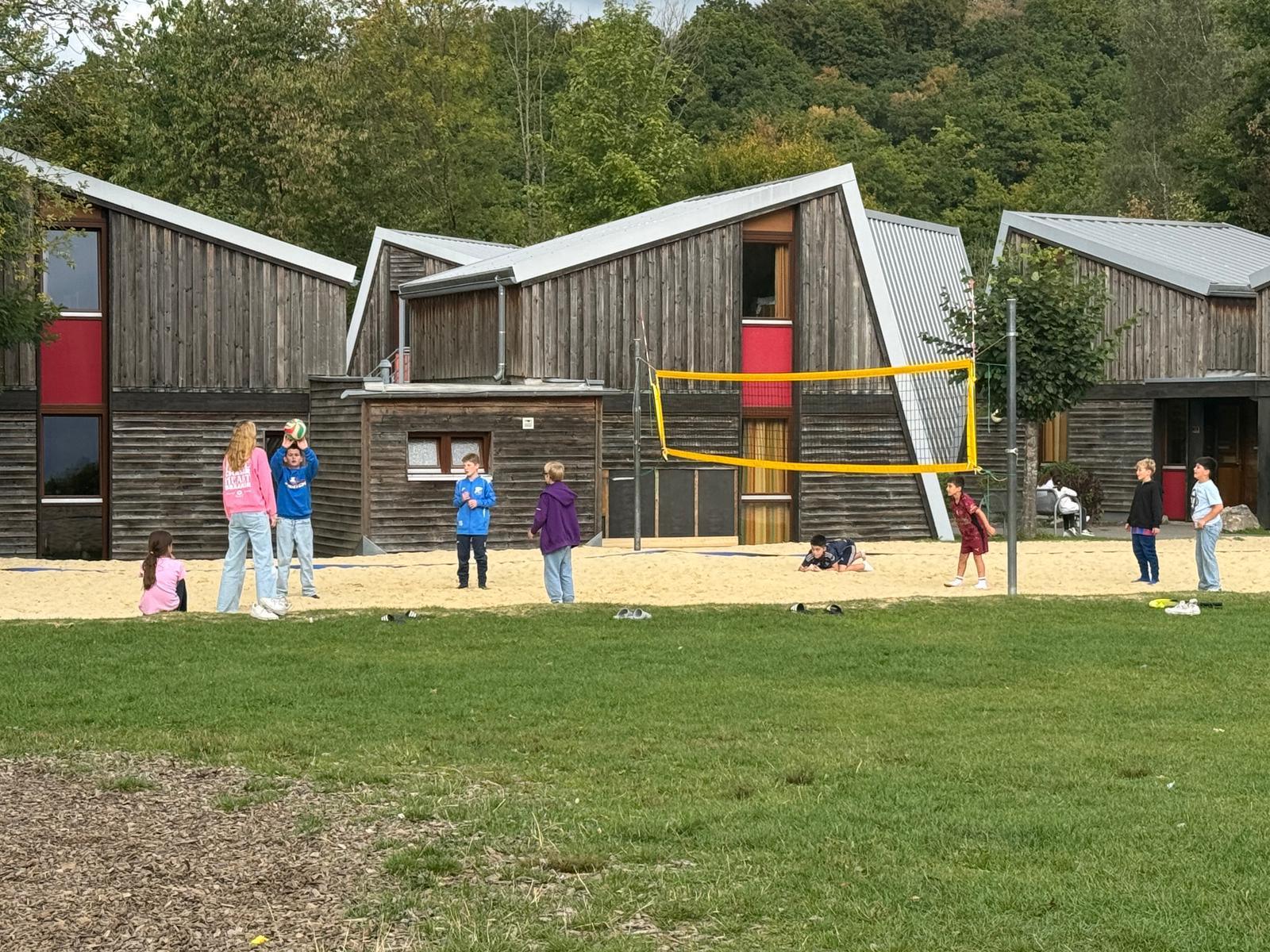 Nach der Ankunft wurde es gleich spannend: Die Kinder bezogen ihre kleinen Häuser, in denen jeweils acht Personen zusammenlebten. Schnell waren die Koffer ausgepackt, die Betten verteilt und die ersten „Hausregeln“ beschlossen. Das war schon ein kleines Abenteuer, das sofort für Gemeinschaft sorgte. Nach dem Mittagessen blieb Zeit, das riesige Gelände zu erkunden, das mit seinen vielen Sport- und Spielflächen, Wegen und Gebäuden fast wie ein eigenes kleines Dorf wirkte. Schon da war allen klar: Hier wird niemand so schnell Langeweile bekommen.