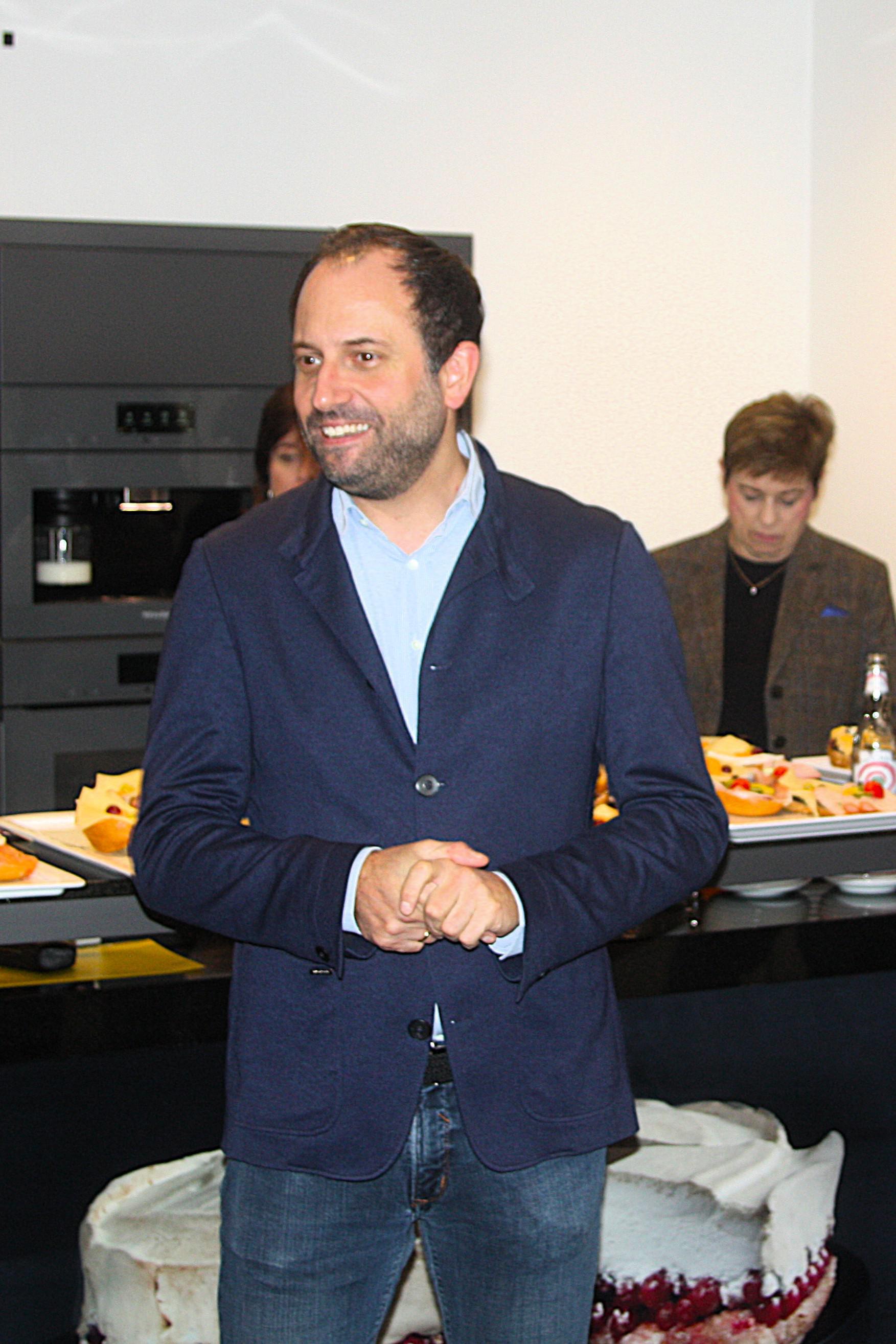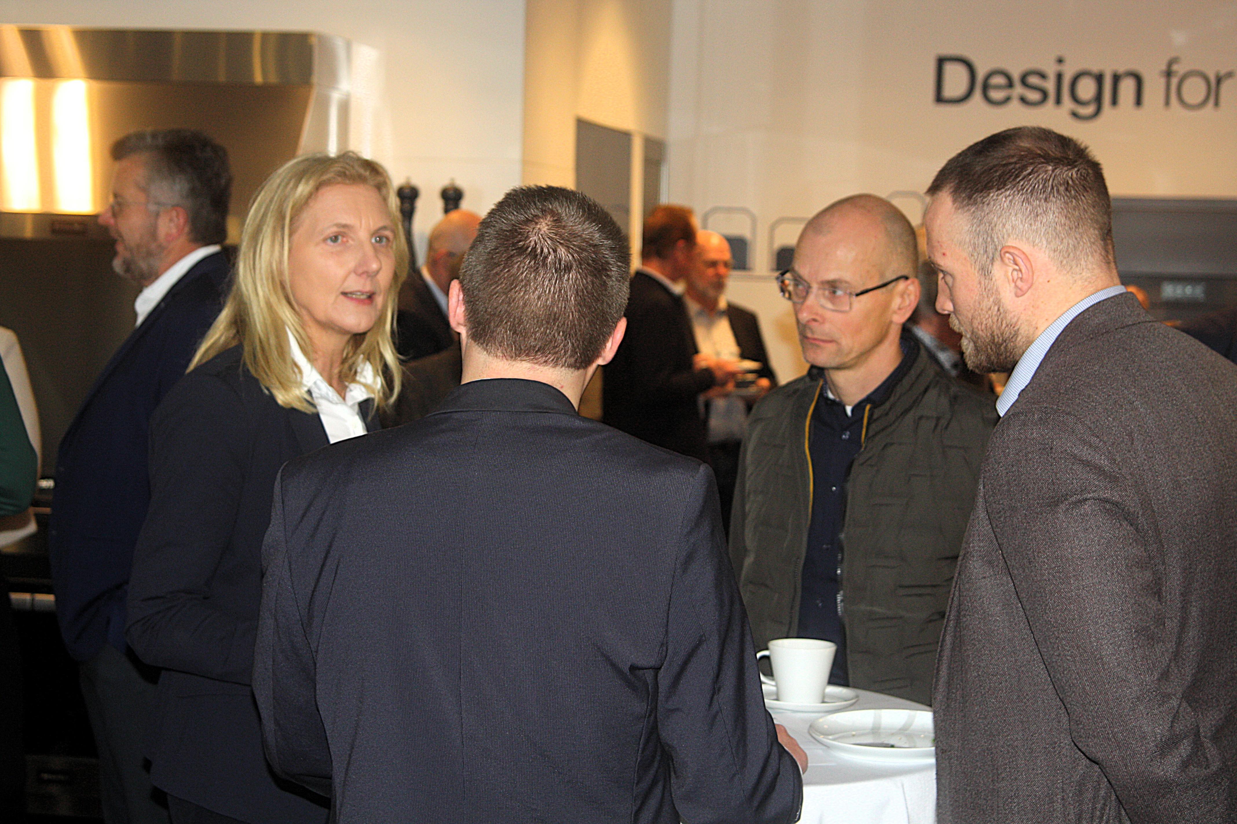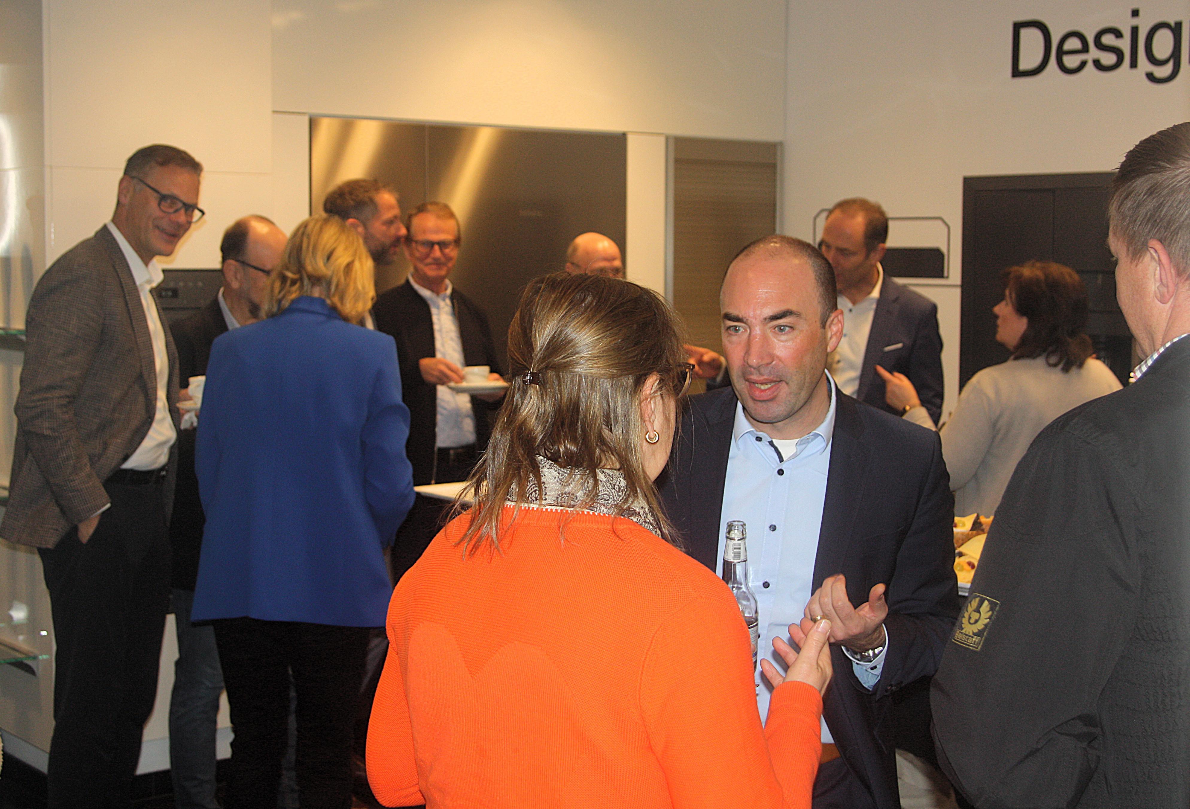 „Der Wettbewerb schläft nicht, weder in China noch im Rest der Welt“, so Vierfuß. Der Initiativkreis Wirtschaft Oelde (iwo) als Organisator und Rouven Vierfuß als Gastgeber des Netzwerktreffens konnten sich über mehr als 30 Unternehmerinnen, Unternehmer sowie Unternehmen- und Stadtvertreter freuen. Die große Resonanz zeigte ein reges Interesse an der Weltmarke Miele. So deuteten es auch iwo-Vorsitzender Jörg Pott und Bürgermeisterin Karin Rodeheger in ihren Begrüßungsworten. „Wenige Unternehmen in unserer Region haben eine so große Markenbekanntheit und -identifikation wie Miele“, betonte die Bürgermeisterin. Mit knapp 650 Mitarbeitern im örtlichen Werk Oelde-Lette stellte sie die wirtschaftliche Bedeutung des Unternehmens für den Wirtschaftsstandort heraus. Jörg Pott dankte Rouven Vierfuß darüber hinaus für das Ausrichten des „Unternehmen im Dialog“.