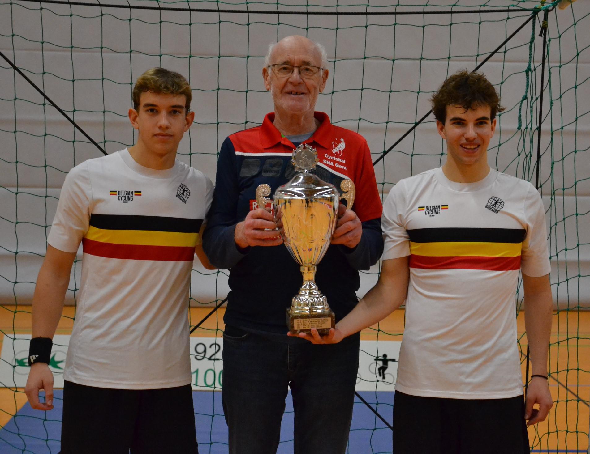 Im vorletzten Spiel konnte Oeldes Reserve die Belgier nicht gefährden, die Oosterlinck- Brüder gewannen 7:3 und hatten zuvor Oelde 1 mit 6:4 Toren abgehängt. In der letzten Partie gegen Lippstadt hatten Voßhans / Tillmann ihr Tagesschicksal selbst in der Hand. Sie hatten bereits sichere 9 Punkte auf dem Konto, Lippstadt nur 6 Zähler. Wieder nahm das Drama seinen Lauf. Radballmaschinen haben keine Bremsen, sonst hätte man denken können, Bals / Walprecht hätten anfangs die ganze Zeit mit angezogener Handbremse gespielt, um dann von null auf hundert von hinten nach vorne durchzustarten. Trotz heftiger Gegenwehr der Schwalben behielt Lippstadt mit 4:2 Treffern die Radlänge Vorsprung. Die Auswertung legte den Kampf um Platz zwei offen. Oelde und Lippstadt erreichten beide 9 Punkte, die Tordifferenz entschied: Bals / Walprecht wurden Zweite mit 20 : 19 Toren, Oelde fiel mit 18 :20 Toren ab auf Rang drei. Die verdienten Sieger Dries und Wout Oosterlinck nahmen mit eindrucksvollen 15 Punkten den Josef-Birwe-Gedächtnis-Pokal mit auf die vierstündige Heimreise nach Gent. Der Schwalbe-Vorsitzende Steffen Vollenkemper: „So weit wanderte die Trophäe noch nie. Auf ein Wiedersehen im November 2026.“