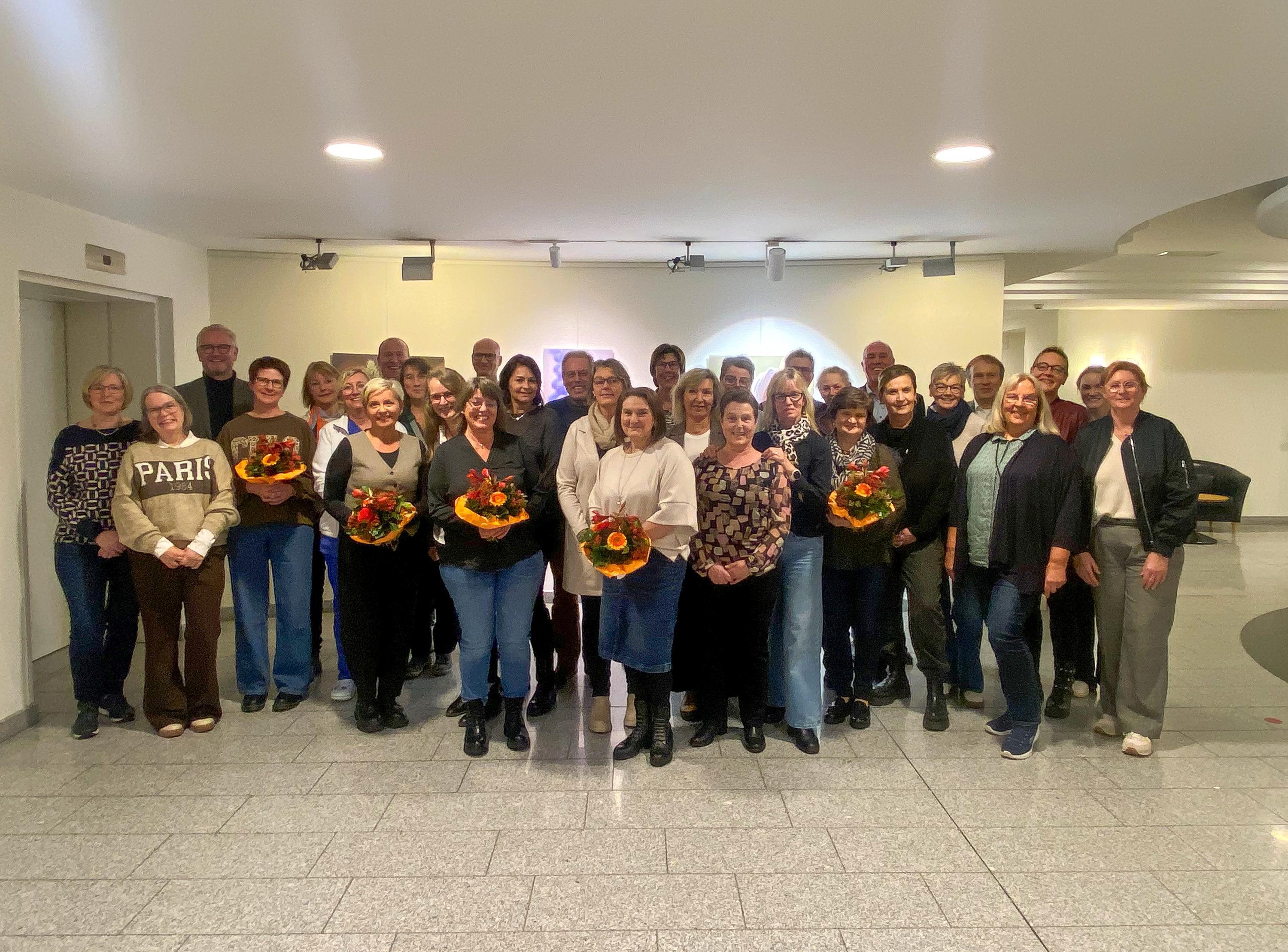 Die Gruppe der Jubilare zeigt einen Querschnitt durch alle Berufsgruppen des Hospitals: Ärzte, Pflegekräfte und Sekretärinnen sind ebenso darunter wie Mitarbeiter der Technik und medizinisches Fachpersonal. „Wir sind stolz, dass wir in so vielen Fachbereichen ein attraktiver Arbeitgeber sind und die Menschen gerne bei uns arbeiten“, betont Bitter. Zum Abschluss der Feierlichkeiten erhielt jeder Jubilar eine Rose.