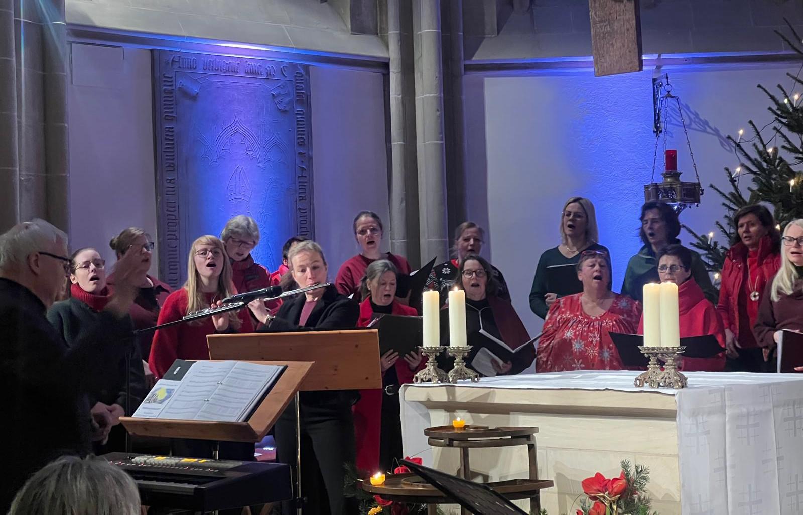 Zwischen den Liedern richteten sich Chormitglieder immer wieder mit kurzen Ansprachen an die Zuhörer und lenkten den Blick auf Glaube, Hoffnung und Zuversicht. Auch das Publikum wurde aktiv eingebunden: Bei Klassikern wie „Stern über Bethlehem“ oder „O, du fröhliche“ wurde begeistert mitgesungen. Die eindrucksvolle Darbietung, unterstützt von Querflöte, Klavier und Chorleiter Wilfried Torwesten an der Orgel, sorgte für große Begeisterung. Besonders die verschiedenen Solobeiträge fanden großen Anklang.
