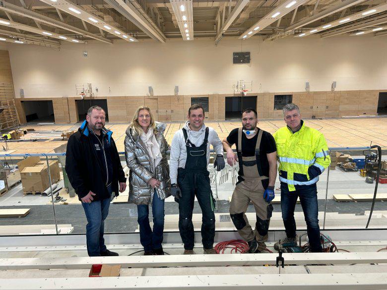In der neuen Sport- und Veranstaltungshalle geht es mit großen Schritten Richtung Ziel. Viele zentrale Arbeiten sind bereits abgeschlossen, aktuell laufen Montage- und Feinarbeiten. Am letzten Osterferienwochenende vom 10. bis 12. April wird die Arena feierlich eröffnet und anschließend dem Schulsport übergeben.