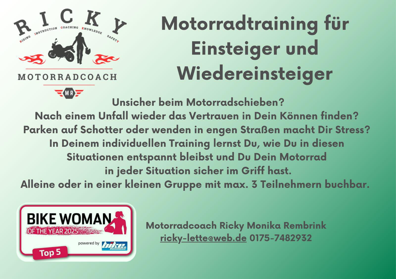 Motorradfahren ist für Ricky mehr als ein Hobby. Es ist Freiheit, Natur, ein Gefühl von Lebendigkeit. Gleichzeitig ist es anspruchsvoll. Konzentration, Fitness und Übung sind entscheidend. Gerade nach der Winterpause unterschätzen viele, wie sehr der Körper gefordert wird. Ricky setzt genau hier an und hilft anderen, sicherer zu werden.