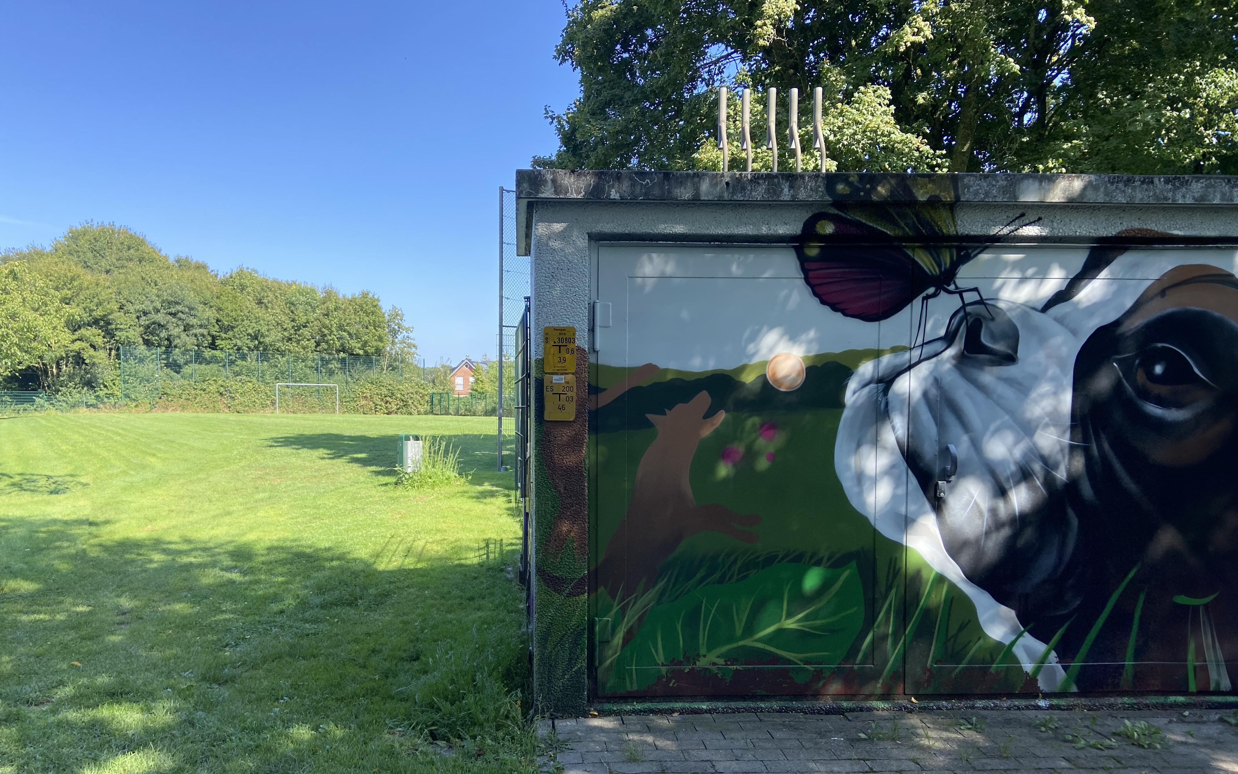 Ein bisschen versteckt und doch super an einem kleinen Pättchen gelegen, wartet der schöne Bolzplatz an der Roten Erde auf die Jungs und Mädels zum Kicken!