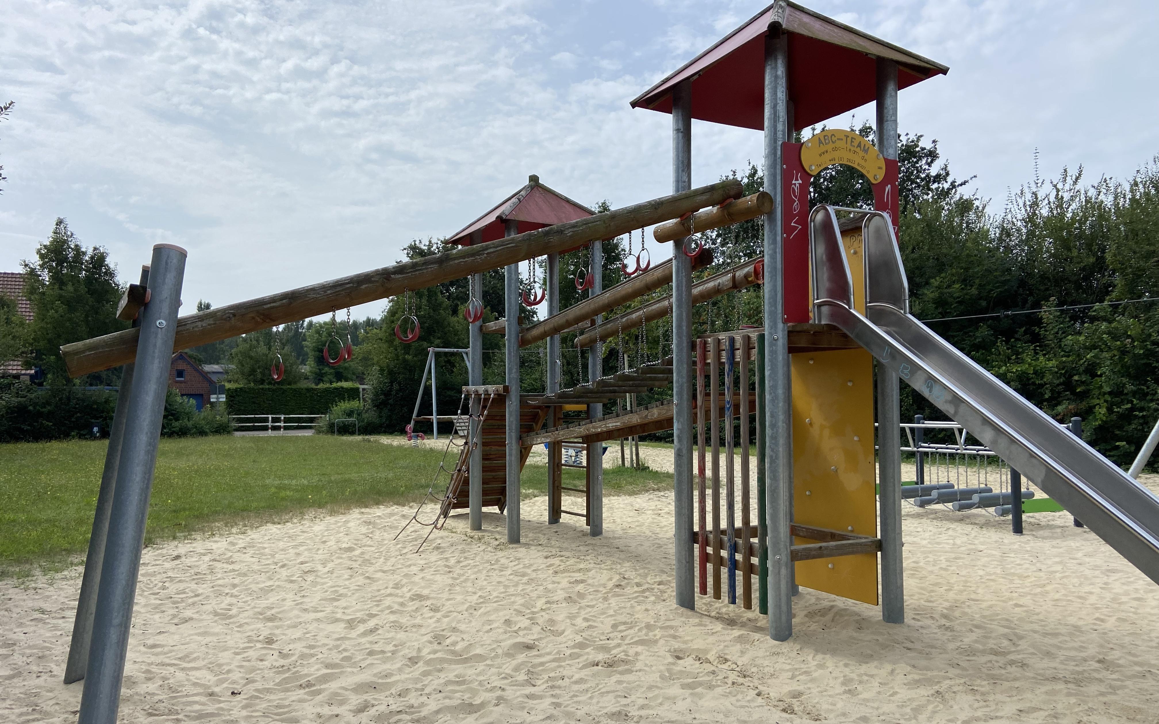 Schön ist auch, dass eine Wiese mitten im Spielplatz angelegt ist. Hier können die Mädchen und Jungen Fußball spielen oder die Federballschläger auspacken.