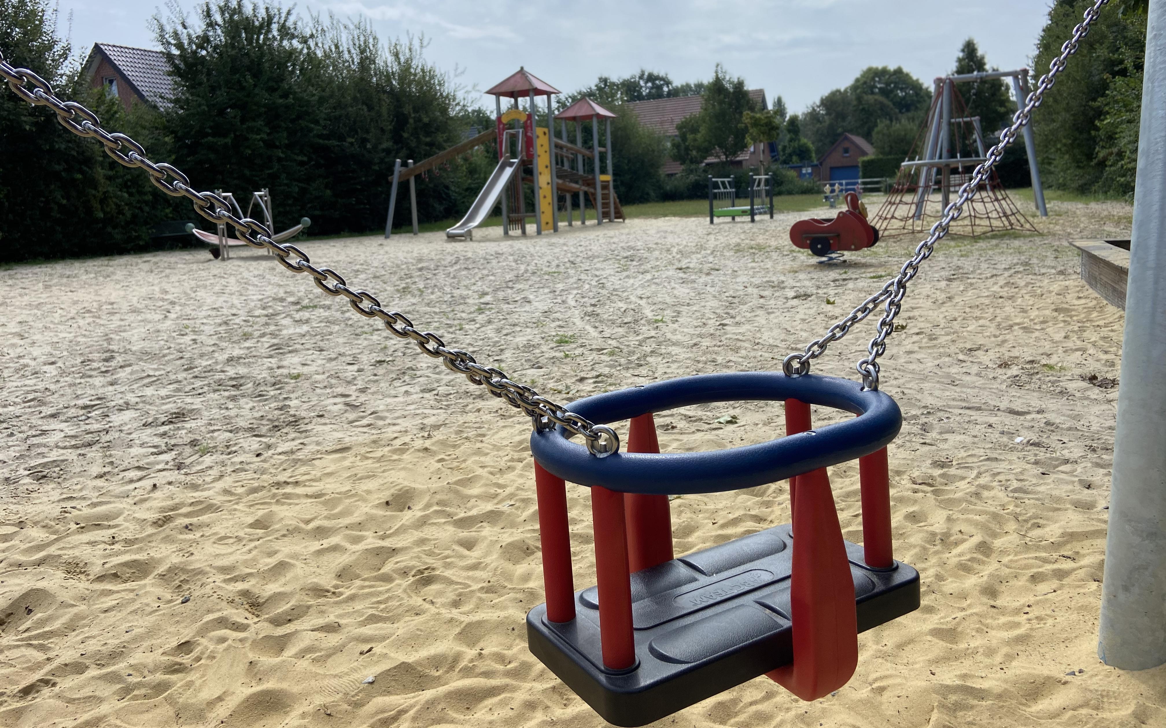 Der großzügige Spielplatz liegt mitten im Wohngebiet und erfreut große und kleinere Kinderherzen. Denn für die jüngeren Kids sind Spielgeräte wie die Babyschaukel oder ein Schaukeltier vorhanden. Die älteren Kinder können die Seilbahn nutzen und auf der Kletteranlage hangeln. Besonderes Highlight ist das Motorikboard.